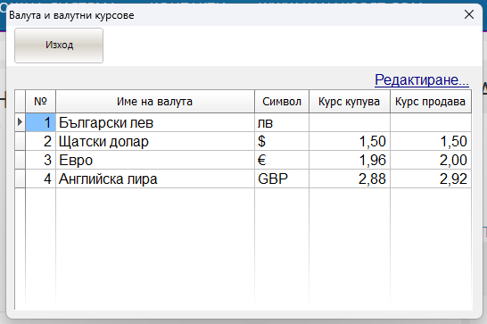 До 01.01.2026 год. всяка база се инсталира със валутите, както са показани на снимката тук: